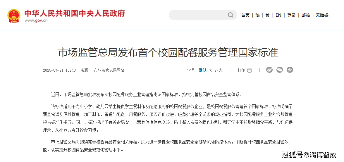 1。 准入取天分的“高门槛”:《指南》将对校园配餐企业的准入前提、硬件设备(如厨房面积、功能区划分、设备从动化程度)、人员天分(如养分师、食物平安办理员配备)提出明白且高于通俗餐饮的要求,从泉源上筛选出优良、有实力的办事商。2。 过程节制的“精细化”:它将对企业从原料采购、清洗切配、烹调加工到分餐、配送、留样的全流程制定极为详尽的操做规范。例如:温度取时间节制:对食物烹调核心温度、配送餐箱温度、从出锅到学生用餐的时间间隔等做出强制性。性条目:明白供应高风险食物(如四时豆、野生蘑菇等),并对油炸、腌制类食物的供应频次进行。“互联网+明厨亮灶”:要求企业实现后厨环节环节的及时,并向家长、学校及监管部分,实现通明化操做。3。 养分健康的“专业化”介入:《指南》不只关心“平安”,更关心“养分”。它将要求企业配备专业养分师,按照学生春秋阶段和发展发育需求,制定科学带量食谱,并按期评估和公示,无效应对儿童青少年超沉肥胖、养分不良等双沉挑和。专家概念:该《指南》是针对校园这一特殊、人群的“定制化”和“升级版”处理方案。它标记着校园配餐办理从“吃热、吃饱”的初级阶段,正式迈入“保障平安、养分、可口”的高质量成长阶段。三、 沉点聚焦:《餐饮办事连锁企业落实食物平安从体义务监视办理》——抓住“牛鼻子”,其焦点逻辑是让总部对全数门店的食物平安担任。